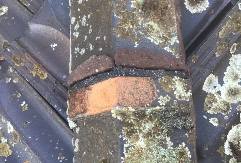 This is a residential terracotta roof repair project in Monbulk. The private client asked the team at Downeys Group Australia to re-bed and re-point the terracotta ridge capping of their single storey dwelling. A new storm water barrier was also installed by the team for the client. Notice in the photo how the pointing deteriorates over time, becoming loose?